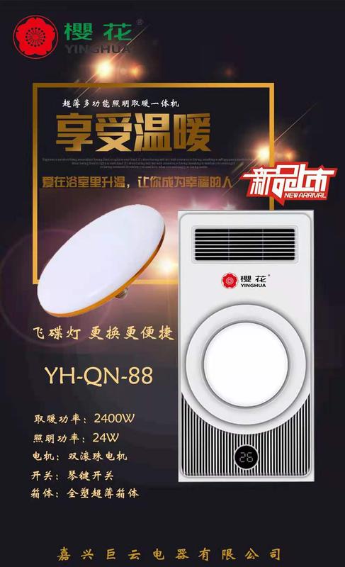 2.琴键开关、防水照明,换气,凉风,取暧*2,温度显示
